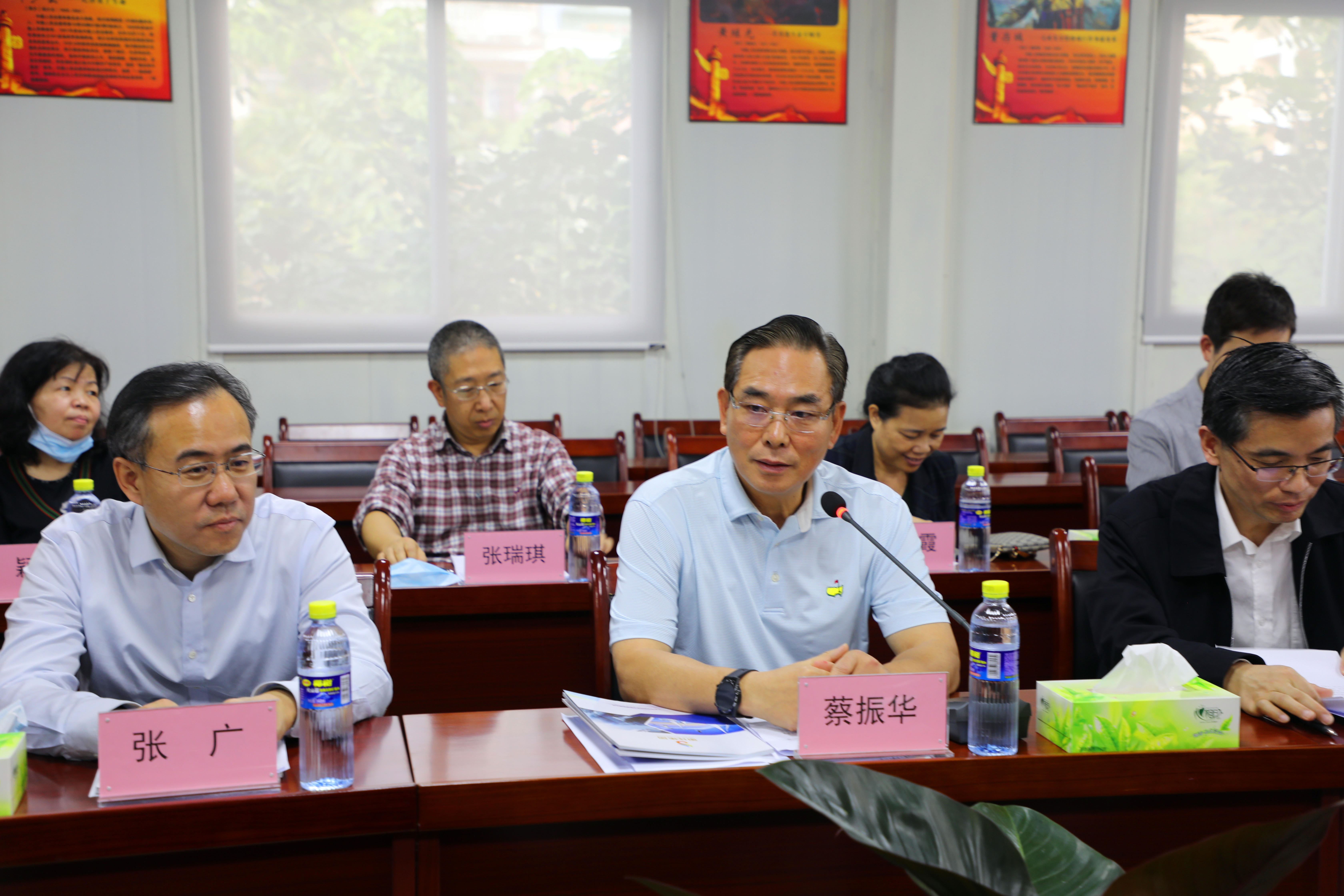董事長陳明、總裁陳云及工會主席高斐斐在集團門前迎接蔡副主席的到來。