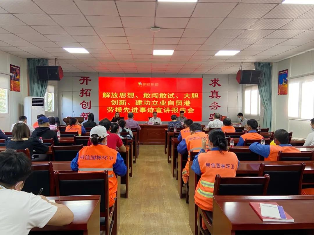 會上,全國勞動模范獲得者吉立斌、王小丹、海南省工人先鋒號代表符少菊,用樸實的語言、真摯的情感和鮮活的事例,分別從不同角度講述了他們在海南自由貿(mào)易港建設中愛崗敬業(yè)、刻苦鉆研、不畏艱難的奮斗故事,同時分享了自己對勞模精神和工匠精神的理解和體會,講述了感人而充滿正能量的故事,為明佳環(huán)衛(wèi)集團的職工樹立了學習的榜樣。