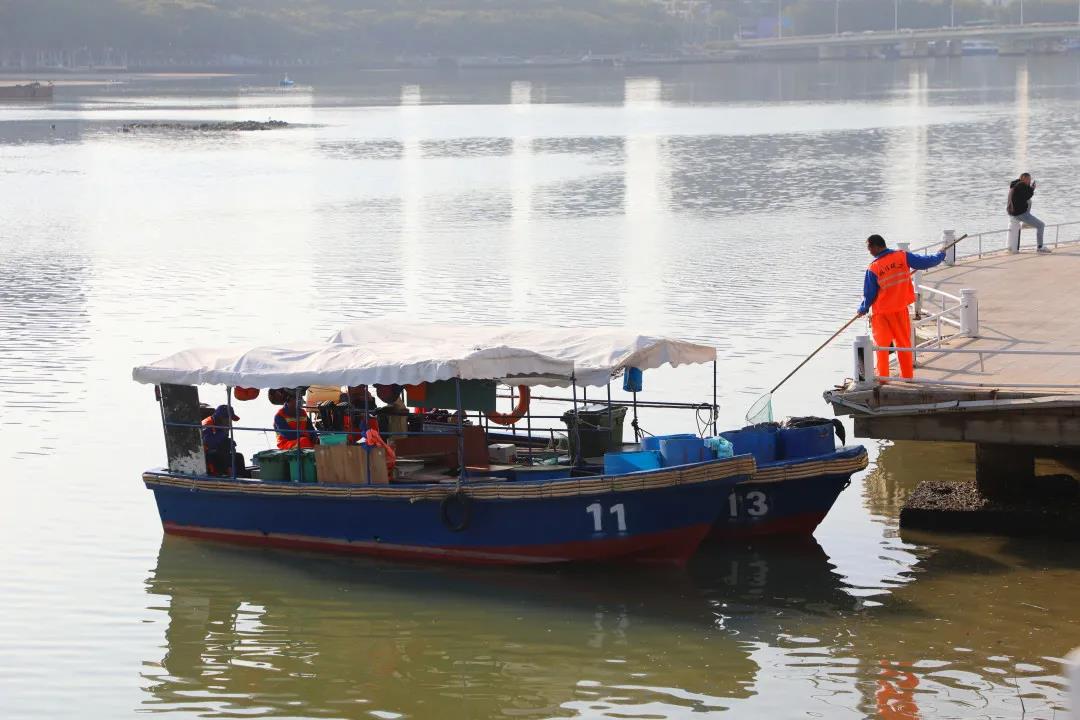 曾靈是三亞明佳園林環(huán)衛(wèi)集團(tuán)天涯區(qū)環(huán)衛(wèi)二隊(duì)的一名員工,和我們平常在街邊看到清理地面垃圾的環(huán)衛(wèi)工人有所不同,他的工作是在船上完成的,每天需要站在作業(yè)船上,手持一把長柄濾網(wǎng),將漂浮在三亞河上的落葉、紙屑等垃圾打撈起來,放入專門的垃圾桶里再運(yùn)輸走。記者來到曾靈的工作地點(diǎn):三亞河,近距離了解他春節(jié)期間的工作是什么樣的……