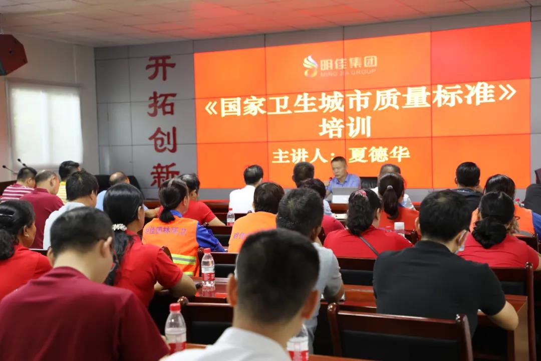 此次培訓(xùn)分三項內(nèi)容:一是總裁陳云分析國家衛(wèi)生城市復(fù)審形勢;二是夏德華調(diào)研員進行《國家衛(wèi)生城市質(zhì)量標準》培訓(xùn);三是副總羅京鮮結(jié)合公司現(xiàn)狀進行講解。
